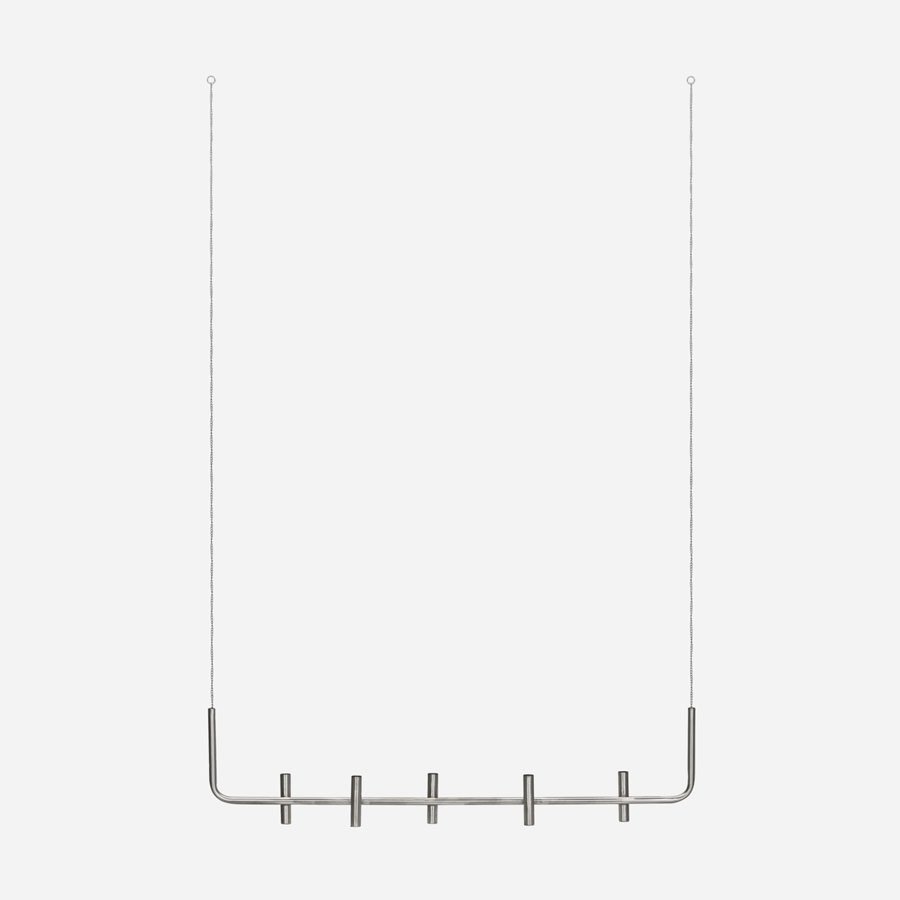 Stagen hænges op i to kæder og du kan selv regulere, hvor højt stagen skal hænge. Vi anbefaler, at du bruger LED-lys i stagen, så du ikke får stearin på bordet eller i karmen.