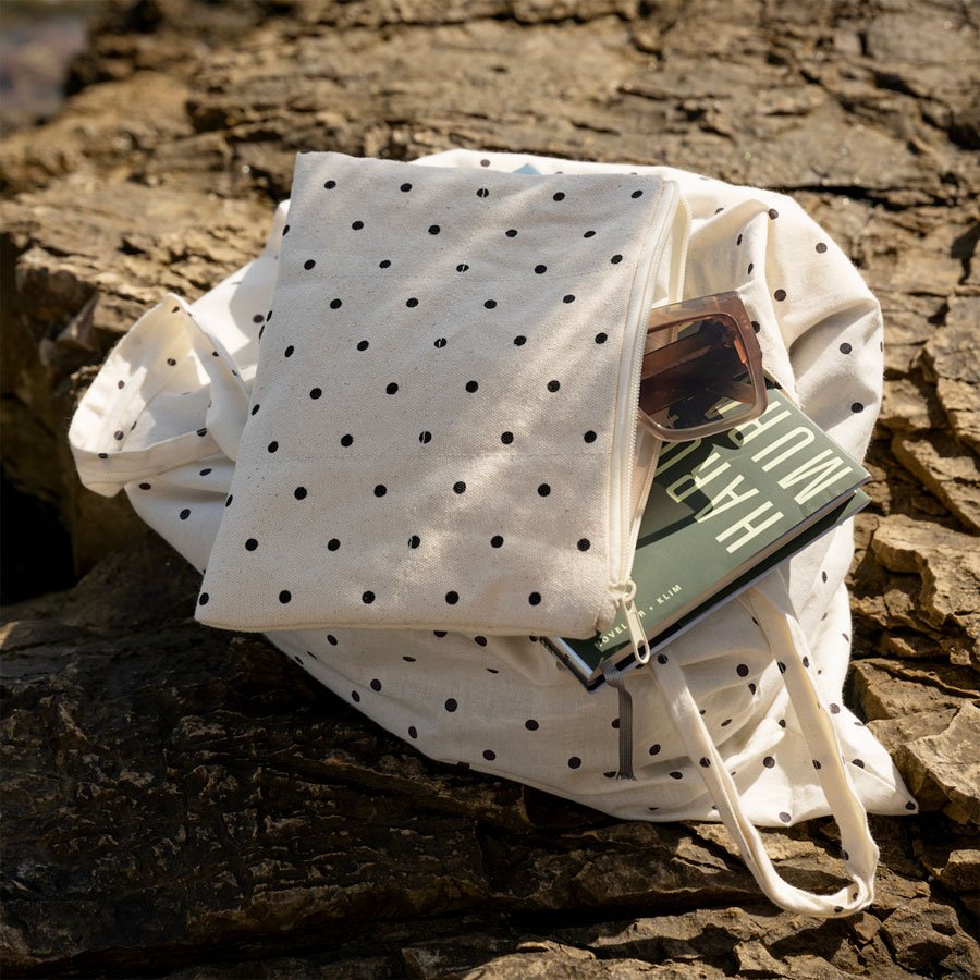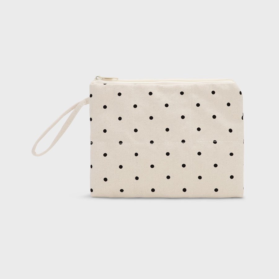 Skøn lille prikket clutch, fra Moshi Moshi Mind, til at holde styr på småting i tasken. Her er plads til både telefon, læbepomade og nøgler. Den lille taske har en strop, så du let kan holde fast i den.