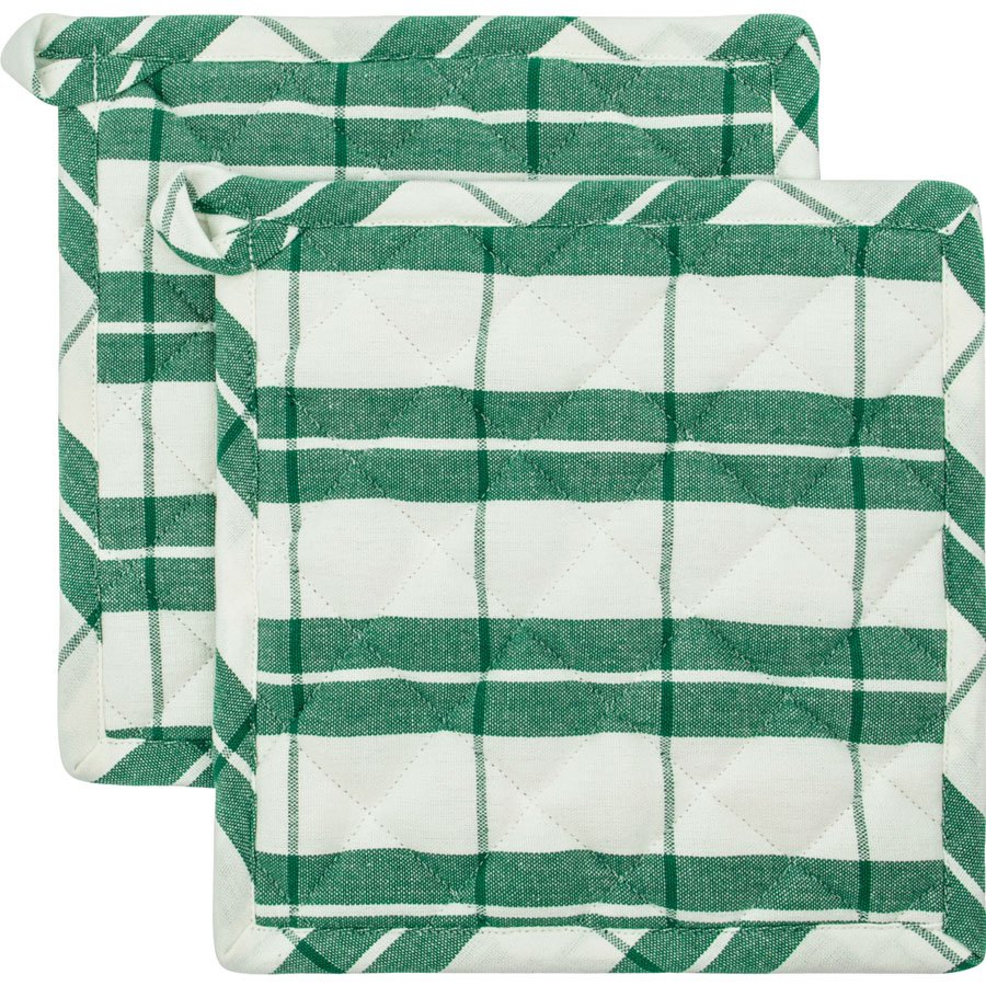 Fine og praktiske grydelapper i grønt/hvidt mønster fra Nicolas Vahé.