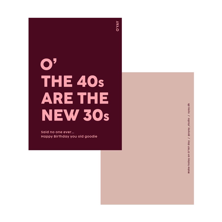 Greet & Keep kort med teksten: “O’ The 40s are the new 30s. Said no one ever… Happy Birthday you old goodie”