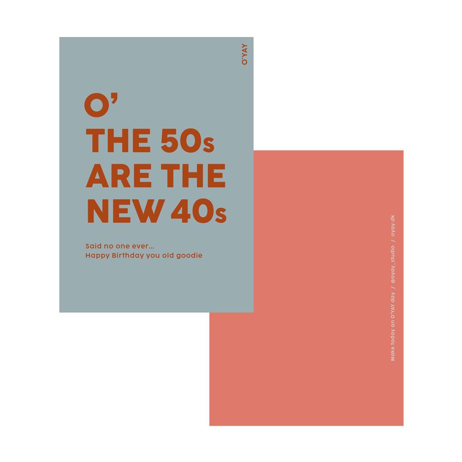 Greet & Keep kort med teksten: “O’ The 50s are the new 40s. Said no one ever… Happy Birthday you old goodie”