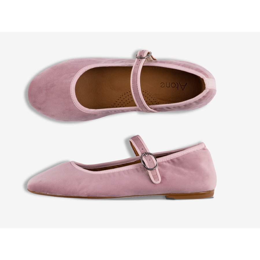 Mary Jane ballerina er lavet i blød velour, med det klassiske spænde over vristen.