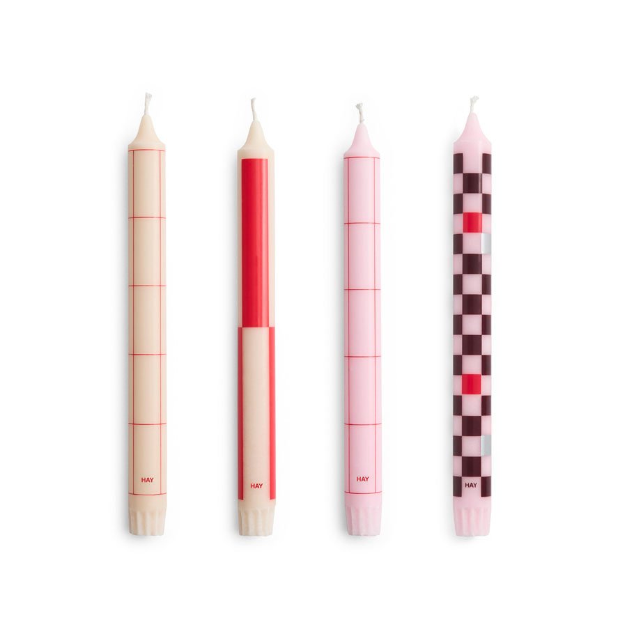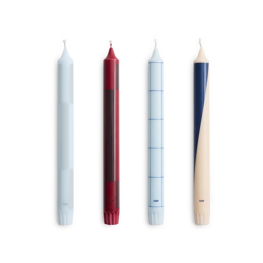De sejeste kronelys fra danske HAY! De kommer i en smuk æske med 4 lys i forskellige farver og mønstre.