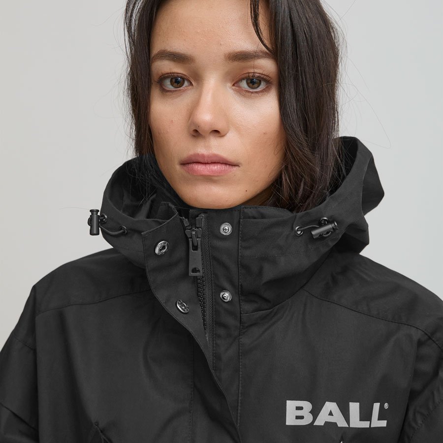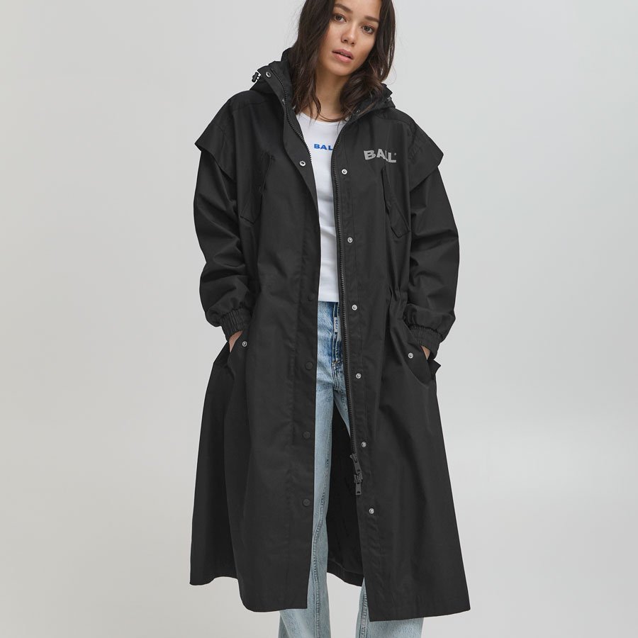 Cool og trendy sort frakke, fra Ball Original, med det flotte BALL logo på ryggen – vi er vilde med den!