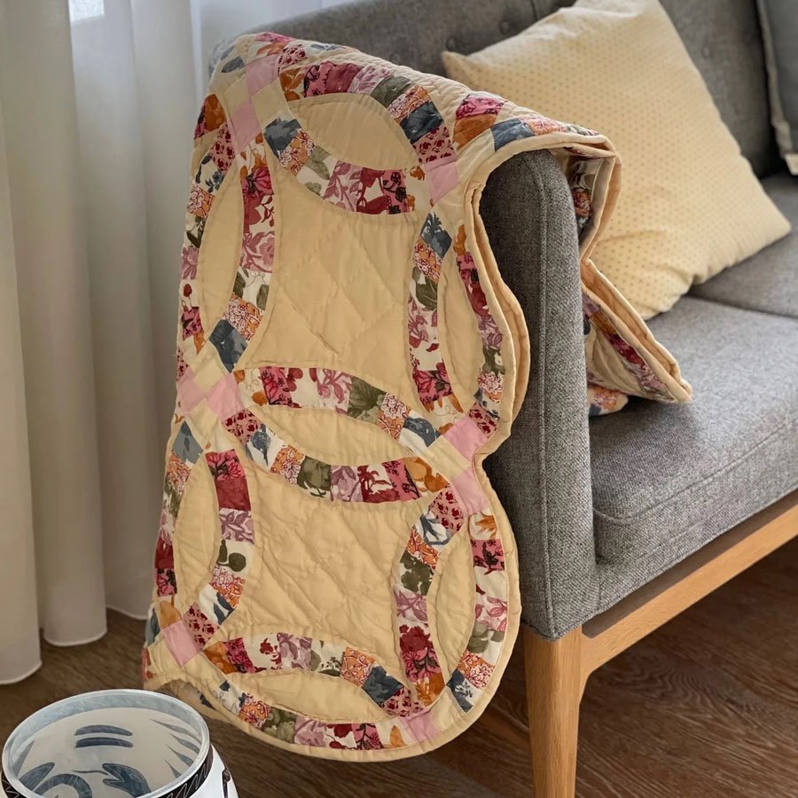 Den smukkeste quiltede plaid i patchwork mønsteret “Wedding ring”. Mønsteret går helt tilbage til det 15. århundrede og symboliserer kærlighed.